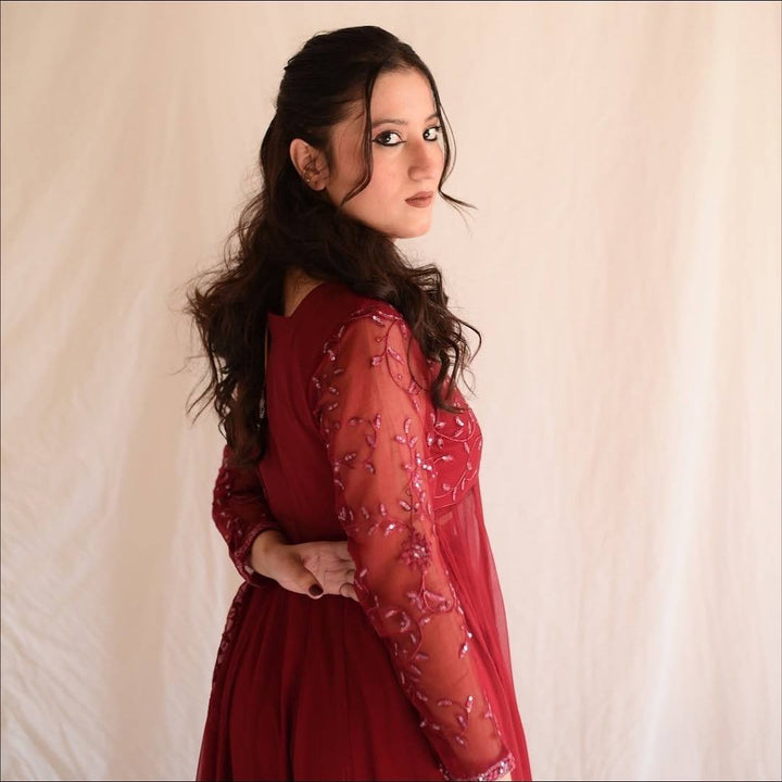 Fabric : Faux Blooming with 3mm Sequins & Zari Thread Embroidery + Heavy Lace Work