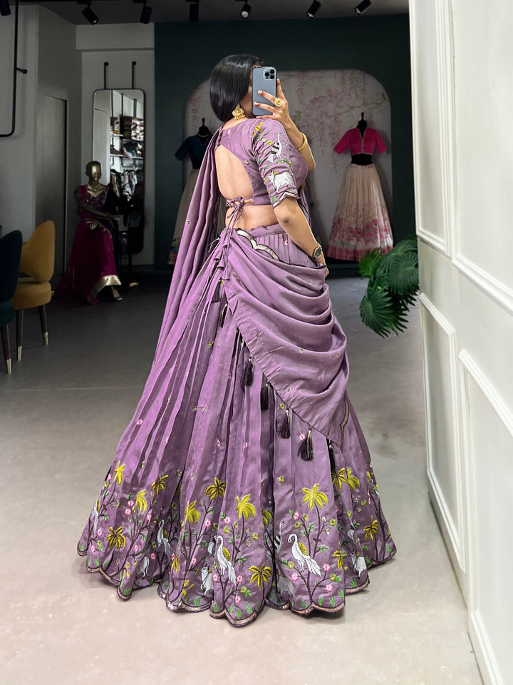 Lehenga work - Sequins and Thread Embroidery Work With Embossed Design Lace