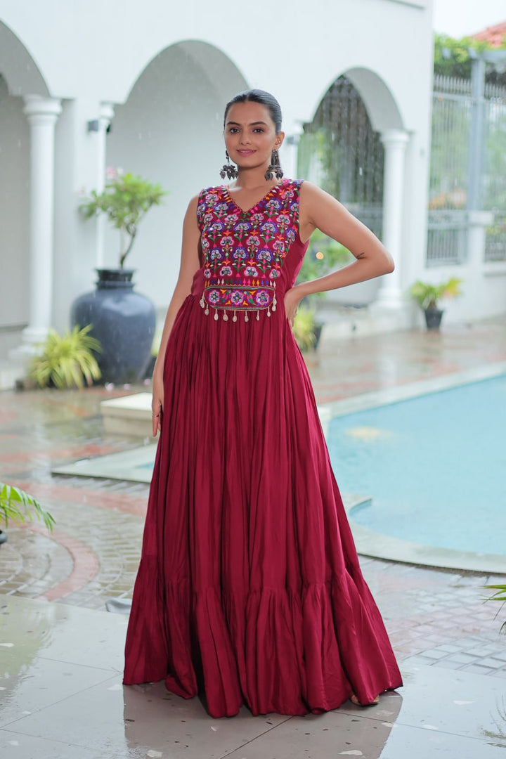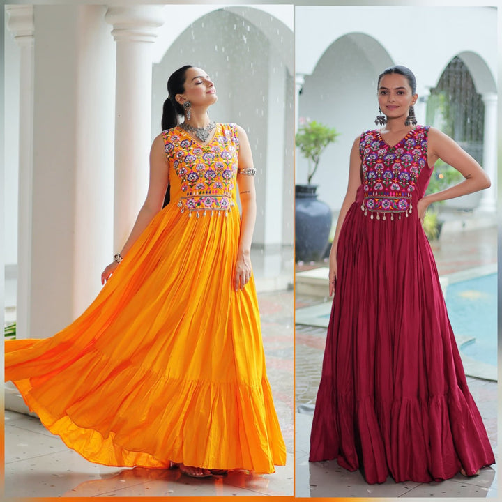 Kavisha Kutchi Gamthi Thread Embroidered Mirror Work Anarkali Gown