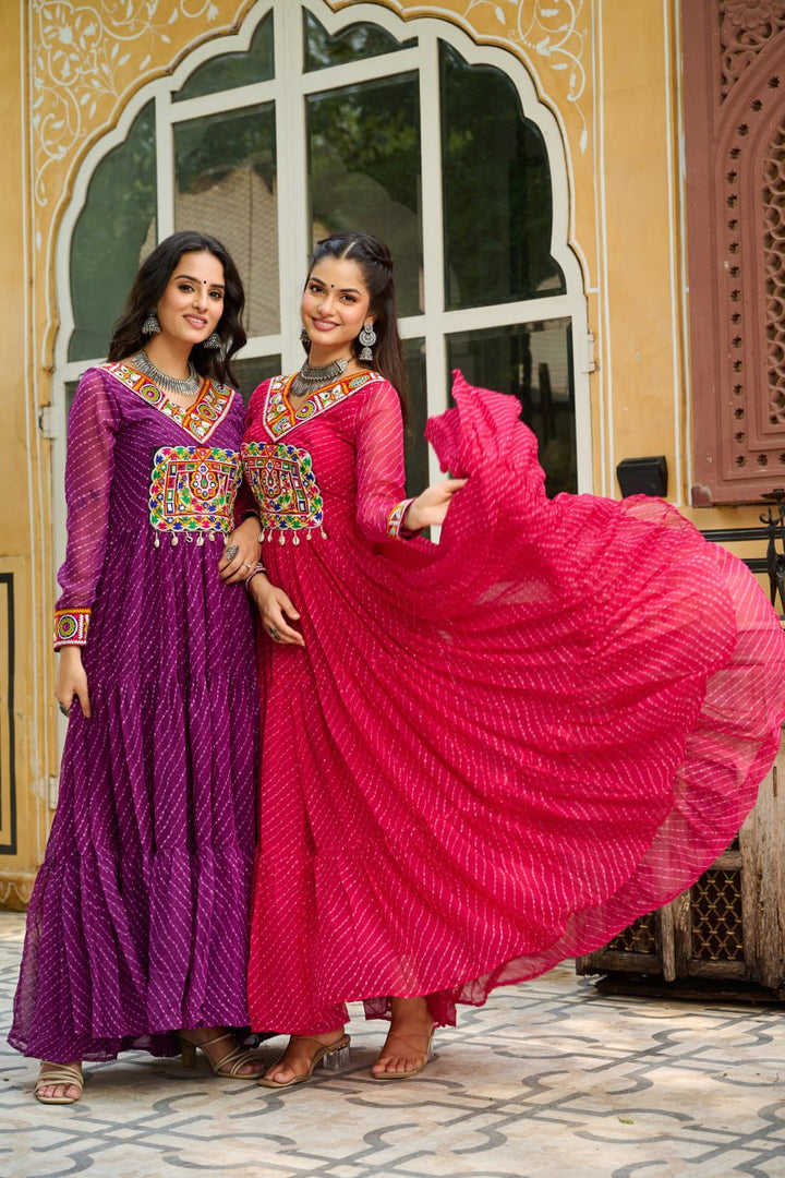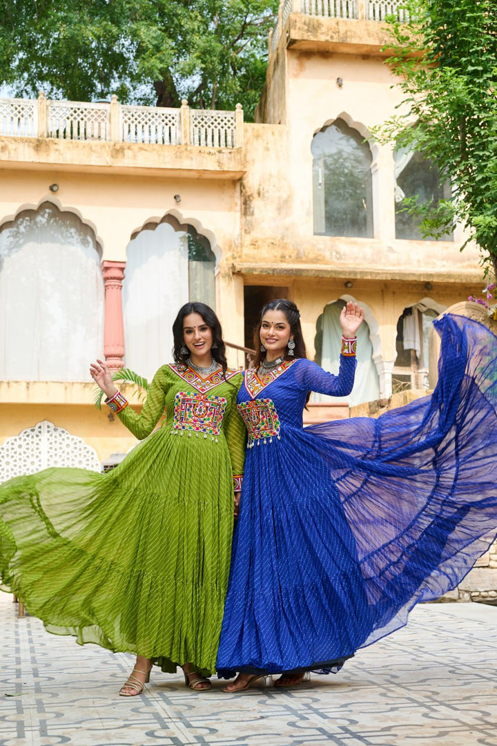 Navrang Twirl Magic: Mirror Embroidered Tiered Flare Gown