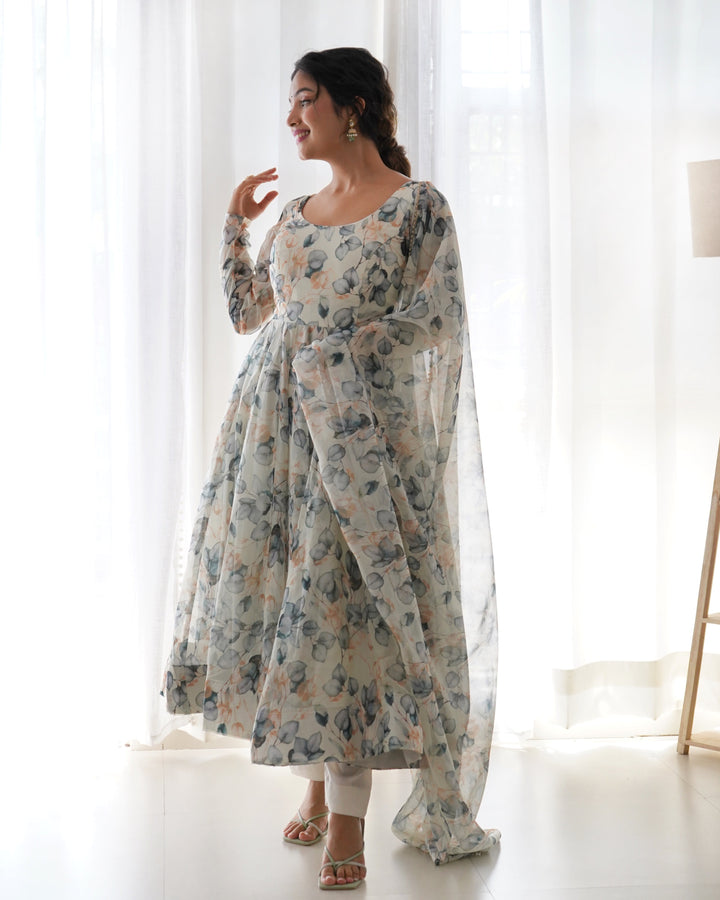 PURE SOFT ORGANZA SILK FABRIC FULLY FLAIR KALI PATTERN NKB-22