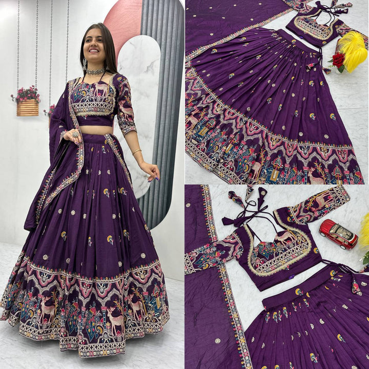 Regal Purple Embroidered Lehenga with Multicolor Detailing