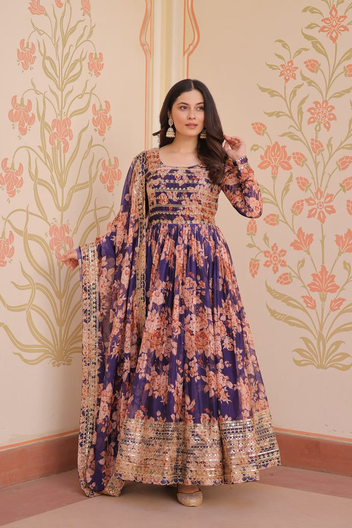 Ruhi Russian Silk Rich Digital Print With Embroidered Sequins Work Gown