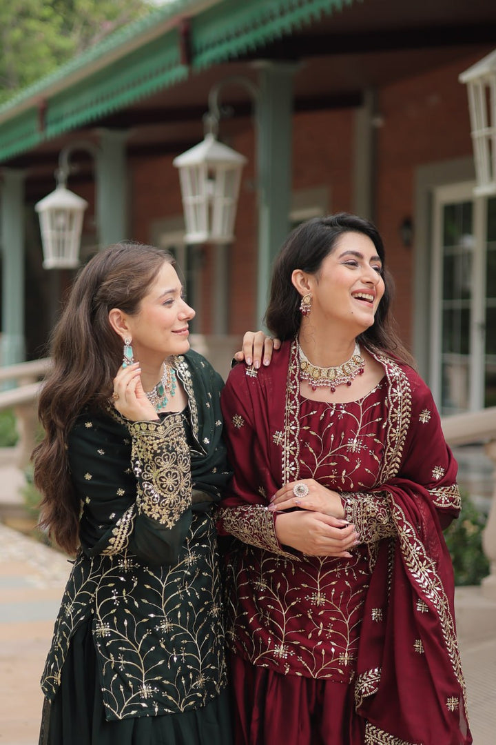 Sequins & Thread Embroidered work Rangoli Silk Kurti Plaazo Set