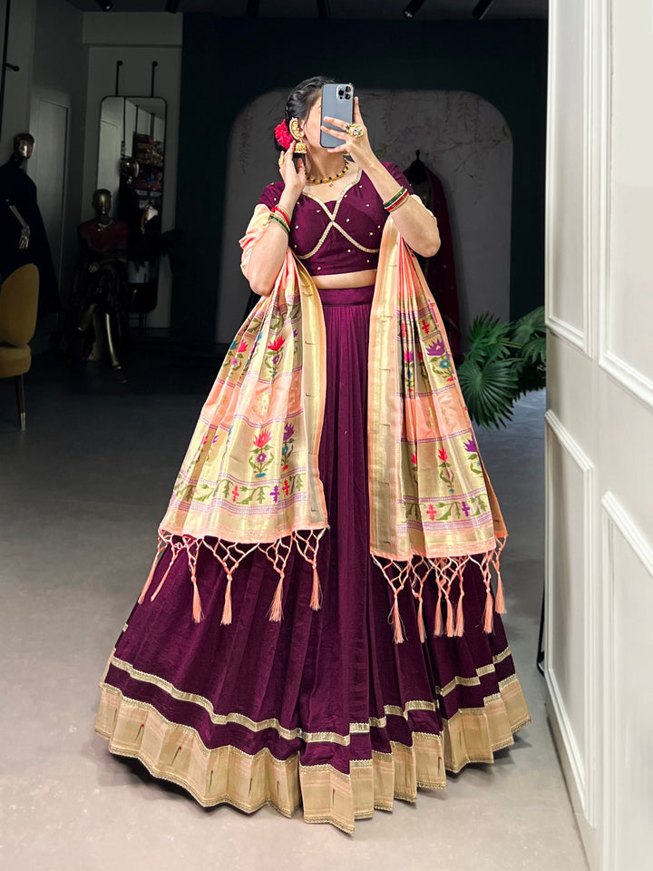 Lehenga Work : Plain with Paithni lace border