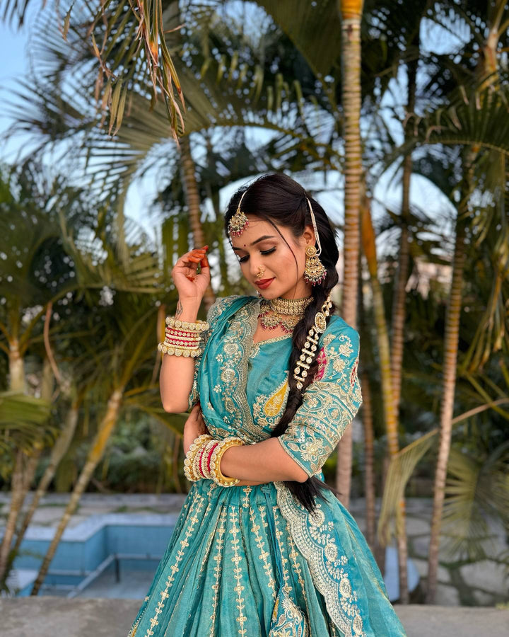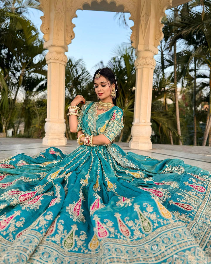 Siya’s Heritage Grace: Teal Embroidered Lehenga