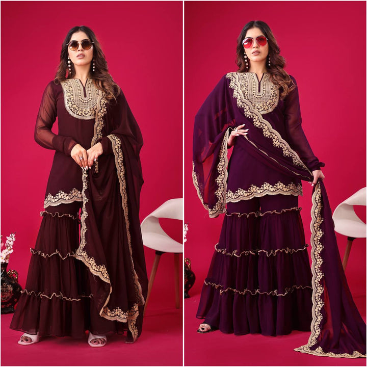 Model Is Wearing : M Size Top :Fabric - Blooming Faux Georgette Work - Heavy Embroidery 3mm Sequence Thread Work With Full SleeveLength - 31-32 InchInner - Micro Cotton(FULLY STITCHED READY TO WEAR)