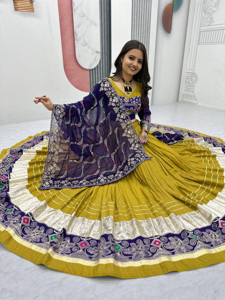 The Festival Muse Jewel Tones with Hand Embroidered Borders Navratri Lehenga Choli