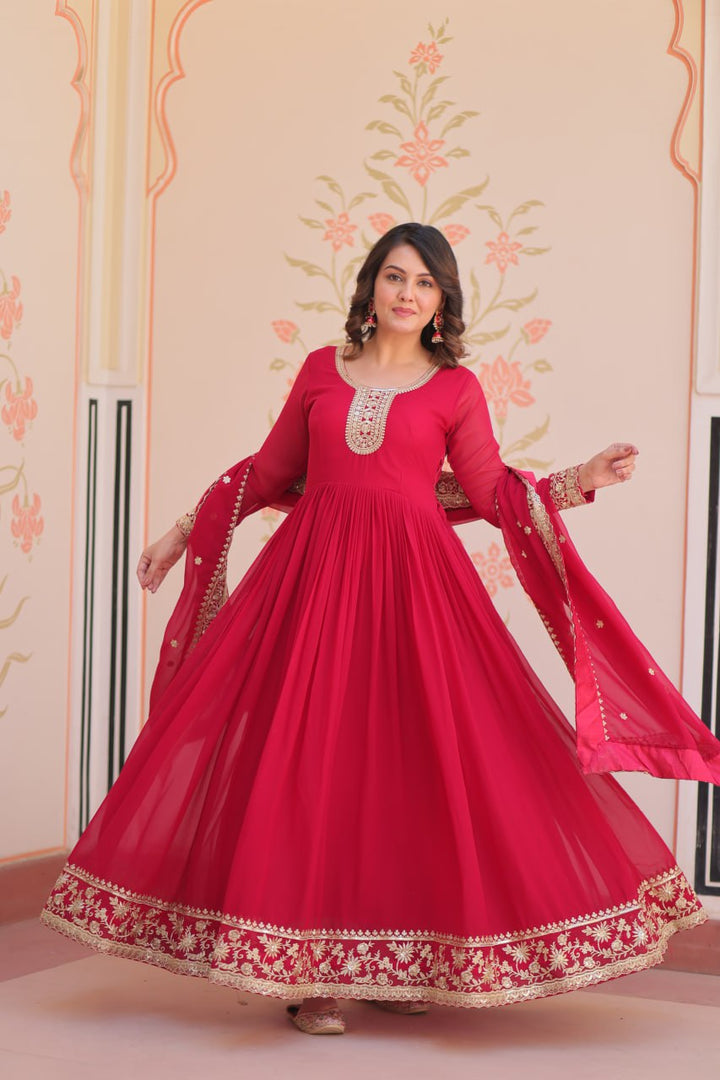 FABRICS & WORK :- Faux Blooming With Rich Embroidery Sequence Work